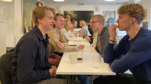 På ena sidan av långbordet sitter de erfarna inom Muf, på den andra de som är helt nya i förbundet. För även om de flesta nog ser speeddejting som en aktivitet där deltagarna ska hitta en framtida partner, visar det sig även kunna användas av människor som delar politiskt intresse av att bekanta sig med varandra.